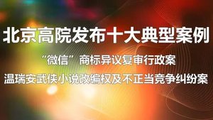 2017年4月20日,北京市高級人民法院發(fā)布2016年司法保護十大典型案例,由集佳團隊代理的“微信”商標異議復(fù)審行政案、溫瑞安武俠小說改編權(quán)及不正當競爭糾紛案雙雙入選。北京高院每年的十大典型案例都以其較強的典型意義及較大的社會影響而備受關(guān)注,集佳代理的案件能夠在眾多案件中脫穎而出,并且喜占兩席,充分展示了集佳訴訟團隊的專業(yè)素養(yǎng)和職業(yè)水準,案件的勝訴,也為各自所在領(lǐng)域的...2017-04-21