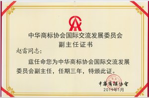 ![]() | 集佳合伙人趙雷律師獲聘中華商標(biāo)協(xié)會國際交流發(fā)展委員會副主任1月24日,中華商標(biāo)協(xié)會第四屆理事會第三次會議暨2019新春工作座談會在京舉行。來自協(xié)會副會長、常務(wù)理事、理事單位及部分會員單位的代表100多人出席會議,共話商標(biāo)品牌建設(shè)新篇章... |