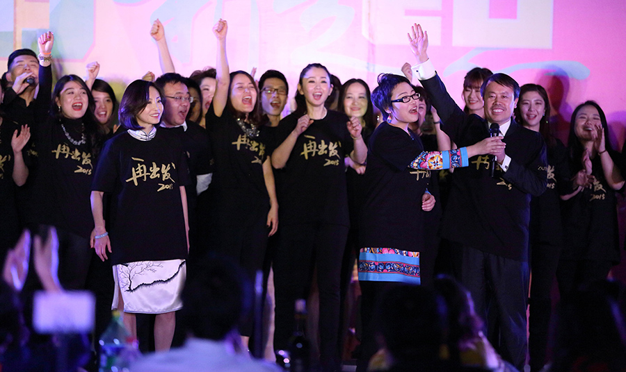 之后,大家手拉著手,一同唱響集佳十年時(shí)唱過(guò)的《真心英雄》,把年會(huì)推向了第一次高潮。