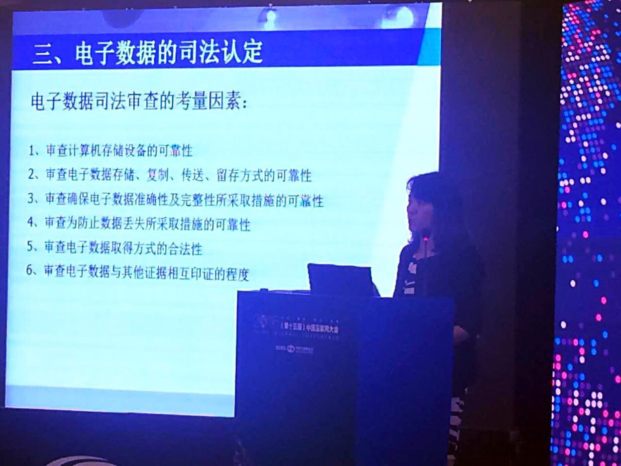 圍繞論壇主題“共責(zé)-共治-共生 電子數(shù)據(jù)護(hù)航互聯(lián)網(wǎng)法治前行”,周丹丹律師介紹了電子數(shù)據(jù)的特點(diǎn)、表現(xiàn)形式及保全方式,通過生動(dòng)的案例對(duì)電子數(shù)據(jù)的認(rèn)定及司法審查的考量因素進(jìn)行分析,并對(duì)電子數(shù)據(jù)司法認(rèn)定目前存在的問題提出了看法及建議。