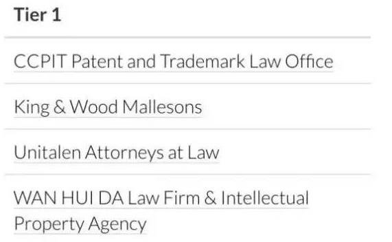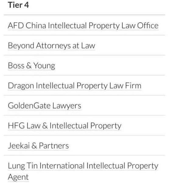 近日,國際著名知識(shí)產(chǎn)權(quán)媒體《知識(shí)產(chǎn)權(quán)管理》雜志(Managing Intellectual Property)公布“2016年知識(shí)產(chǎn)權(quán)之星商標(biāo)業(yè)務(wù)排行榜”(IP Stars 2016 Trade Mark Rankings)。集佳同時(shí)榮登商標(biāo)爭(zhēng)議業(yè)務(wù)及商標(biāo)訴訟業(yè)務(wù)中國區(qū)第一梯隊(duì)(Tier 1)。