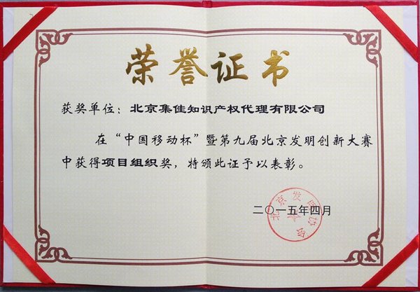 4月15日,北京發(fā)明協(xié)會(huì)成功舉辦了“中國移動(dòng)杯”暨第九屆北京發(fā)明創(chuàng)新大賽頒獎(jiǎng)會(huì),集佳在本次大賽中榮獲“項(xiàng)目組織獎(jiǎng)”。