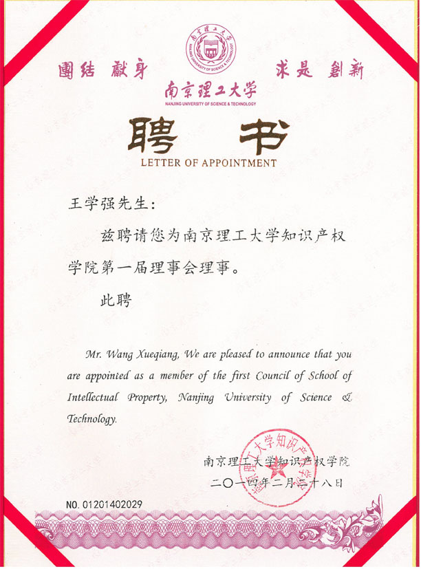 2月28日,由工業(yè)和信息化部、國家知識產(chǎn)權(quán)局和江蘇省人民政府共建的南京理工大學(xué)知識產(chǎn)權(quán)學(xué)院,在南京揭牌并成立首屆理事會。在理事會成立大會上,集佳合伙人王學(xué)強受聘為第一屆理事會理事。