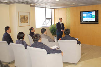 洪峰副市長(zhǎng)等領(lǐng)導(dǎo)聽(tīng)集佳于澤輝所長(zhǎng)匯報(bào)工作