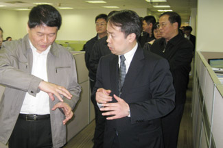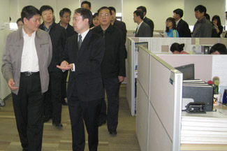 輕松愉快的工作匯報(bào),讓歡快的氛圍一直延續(xù)到接下來(lái)的參觀當(dāng)中。在于所長(zhǎng)的陪同下,洪峰副市長(zhǎng)一行參觀了集佳位于賽特廣場(chǎng)7層和8層的辦公區(qū),于所長(zhǎng)依次對(duì)集佳的部門設(shè)置及其工作流程與職能向各級(jí)領(lǐng)導(dǎo)做了詳細(xì)介紹。洪峰副市長(zhǎng)一行在參觀過(guò)程中表示,北京市的快速發(fā)展離不開(kāi)知識(shí)產(chǎn)權(quán)的力量,首都正在以更高標(biāo)準(zhǔn)全面實(shí)施“人文北京、科技北京、綠色北京”的戰(zhàn)略,北京市政府不僅重視城市的硬件建設(shè),更看重以知識(shí)產(chǎn)權(quán)為代表的軟實(shí)力的增強(qiáng),這就需要廣大知識(shí)產(chǎn)權(quán)工作者的不懈努力。