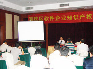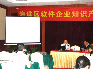 一直以來,區(qū)內(nèi)大部分軟件企業(yè)的軟件產(chǎn)品都是以登記著作權(quán)進(jìn)行保護(hù),為了指導(dǎo)企業(yè)運(yùn)用專利權(quán)保護(hù)軟件的核心內(nèi)容,有效維護(hù)軟件企業(yè)的權(quán)益,海珠區(qū)知識產(chǎn)權(quán)局特舉辦了本次活動(dòng)。廣州市知識產(chǎn)權(quán)局吳岳靜局長、楊抗帝巡視員,海珠區(qū)政協(xié)副主席、知識產(chǎn)權(quán)局劉金鵬局長,廣州市軟件協(xié)會姚柳森副秘書長以及區(qū)知識產(chǎn)權(quán)局相關(guān)人員,轄區(qū)內(nèi)近20家軟件企業(yè)和相關(guān)科技園區(qū)的負(fù)責(zé)人出席參加了本次活動(dòng)。