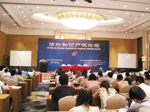 由蘇州市知識產(chǎn)權(quán)局、蘇州市商務局主辦,北京集佳知識產(chǎn)權(quán)代理有限公司、美國凱威萊德國際律師事務所、蘇州高新區(qū)知識產(chǎn)權(quán)局共同承辦的“涉外知識產(chǎn)權(quán)論壇”于6月30日在蘇州香格里拉大酒店隆重舉行。蘇州市知識產(chǎn)權(quán)局副局長施衛(wèi)兵和蘇州市商務局副局長王志明出席論壇并致辭。