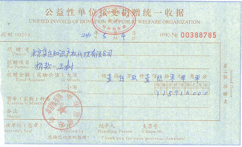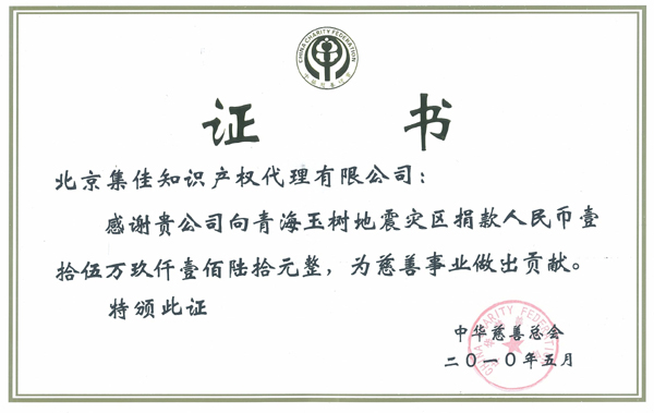 2010年5月4日,集佳員工代表將善款轉(zhuǎn)交至中華慈善總會(huì)玉樹賑災(zāi)專項(xiàng)行動(dòng),并代表集佳全體員工表達(dá)了一個(gè)共同的愿望:與全國人民一起,為玉樹重建溫暖的家園!