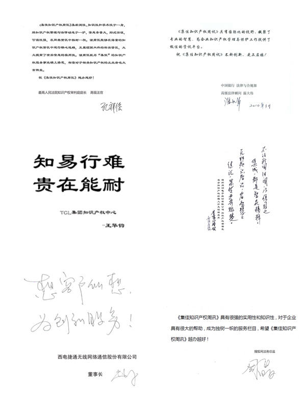 集佳知識產(chǎn)權(quán)周訊從創(chuàng)刊伊始,就用專業(yè)的視角對業(yè)界資訊進行細(xì)致而深入地收集與整理,并快速地傳遞給每位訂閱者。超過幾千名訂閱者的支持與鼓勵,使“集佳周訊”能夠堅持近6年,每周提供翔實、專業(yè)、針對性強的知識產(chǎn)權(quán)資訊及文章。而閱讀“集佳周訊”也成為越來越多知識產(chǎn)權(quán)人士了解資訊、學(xué)習(xí)經(jīng)驗、交流爭鳴的快速通道。
