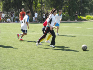 為了鼓勵女同事積極參與體育運(yùn)動,大賽組委會特別規(guī)定每隊(duì)至少要有一名女隊(duì)員參與,這也成為本次比賽一個最大的看點(diǎn),足球場上,女隊(duì)員們敢擋敢拼,一次次漂亮的進(jìn)球贏得了場外啦啦隊(duì)更持久的掌聲。