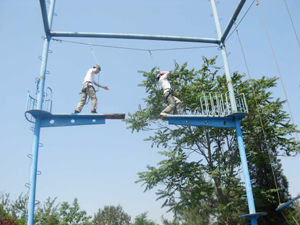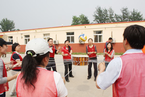 第二天一早,挑戰(zhàn)正式開始:動感顛球、驛站傳輸、移動高爾夫、不倒森林、高空斷橋、合力過橋……當培訓師將一個個項目公布后,大家發(fā)現(xiàn),只有認真分析隊員優(yōu)勢,合理分配資源,達到默契的協(xié)作和配合,而且中間環(huán)節(jié)沒有大的失誤和錯誤,才能完成任務。炎炎烈日下,雖然隊員當中有的身寬體胖,有的恐高,有的身體協(xié)調(diào)能力差,但沒有一個被困難嚇倒,沒有一人被落下,“不拋棄、不放棄”成為每個隊員心中的信念。在隊長的帶領下,大家克服重重困難,團結協(xié)作,互相鼓勵,全部完成了挑戰(zhàn)任務,而且有的團隊還通過完美的配合創(chuàng)造了破紀錄的佳績。