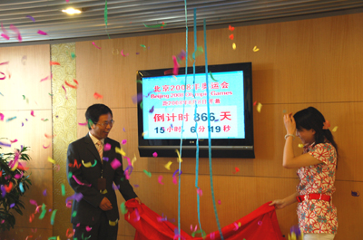李德山副所長(zhǎng)與員工代表一同為奧運(yùn)倒計(jì)時(shí)鐘揭幕