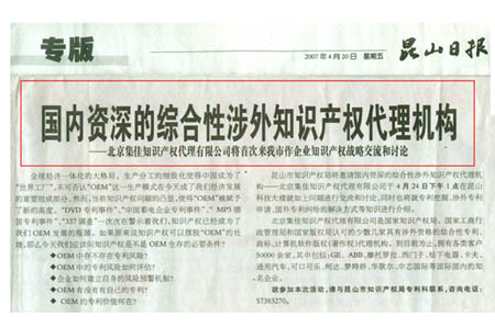 針對(duì)此次集佳首次赴昆山市作知識(shí)產(chǎn)權(quán)講座,當(dāng)?shù)孛襟w如《昆山日?qǐng)?bào)》等進(jìn)行了詳細(xì)報(bào)道。