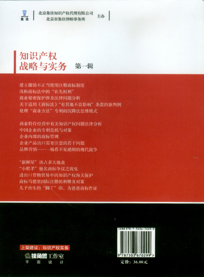 該書的出版得到了法律出版社的大力支持。根據(jù)法律出版社與集佳的共同規(guī)劃,《知識產(chǎn)權(quán)戰(zhàn)略與實務》連續(xù)出版物計劃每年出版2至3本。目前,《知識產(chǎn)權(quán)戰(zhàn)略與實務(第二輯)》也即將出版,第三輯正在制作中。