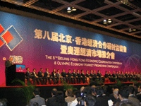 9月2日,“第八屆北京香港經(jīng)濟合作研討洽談會暨奧運經(jīng)濟市場推介會”在香港會議展覽中心開幕,中共中央政治局委員、北京市委書記劉淇,全國政協(xié)副主席霍英東,香港特區(qū)行政長官董建華,中央政府駐港聯(lián)絡辦公室主任高祀仁等出席了開幕式。為期兩天的京港洽談會將緊密圍繞北京籌辦奧運會和落實CEPA帶來的巨大商機,向各界推介項目、促進合作。