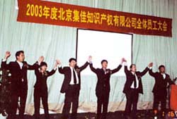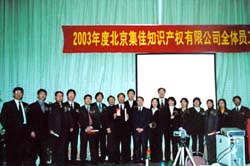 2003年,對于集佳來說,是向國際化企業(yè)邁進(jìn)的關(guān)鍵一年,集佳人上下同心、拼搏奮進(jìn),戰(zhàn)勝了“非典”對我們的巨大挑戰(zhàn)和代理機(jī)構(gòu)放開的嚴(yán)峻考驗,再次成為商標(biāo)代理量的全國第一。集佳合伙人會議主席于澤輝在2003年度工作報告中,詳細(xì)闡述了集佳在過去的一年里取得的成績和進(jìn)步,按部門總結(jié)了2003年工作的優(yōu)勢和不足,并詳細(xì)分析了行業(yè)前景、國際環(huán)境和集佳的優(yōu)勢與發(fā)展?jié)摿Γ辜讶藢υ?年內(nèi)把集佳發(fā)展成為世界前100名知識產(chǎn)權(quán)代理機(jī)構(gòu)的目標(biāo)充滿信心。