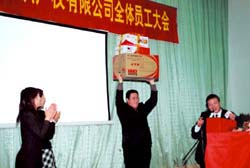 會議最后的抽獎活動,持續(xù)了會場的熱烈氣氛,無論是中獎員工還是只拿到紀(jì)念獎的員工,都表現(xiàn)出了極高的參與性,大家在歡樂聲中圓滿的結(jié)束了這次大會。