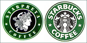 2005年3月,星巴克控訴Elpreya的行為直接侵犯了其已注冊的標(biāo)識,但被受理法院駁回。星巴克的標(biāo)識中采用了美人魚圖案,并已有一定的認知度, Starpreya則使用了一個女神的形象。