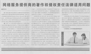 集佳律師文章《網(wǎng)絡(luò)服務(wù)提供商的著作權(quán)侵權(quán)責(zé)任法律適用問(wèn)題》在《中國(guó)貿(mào)易報(bào)》發(fā)表