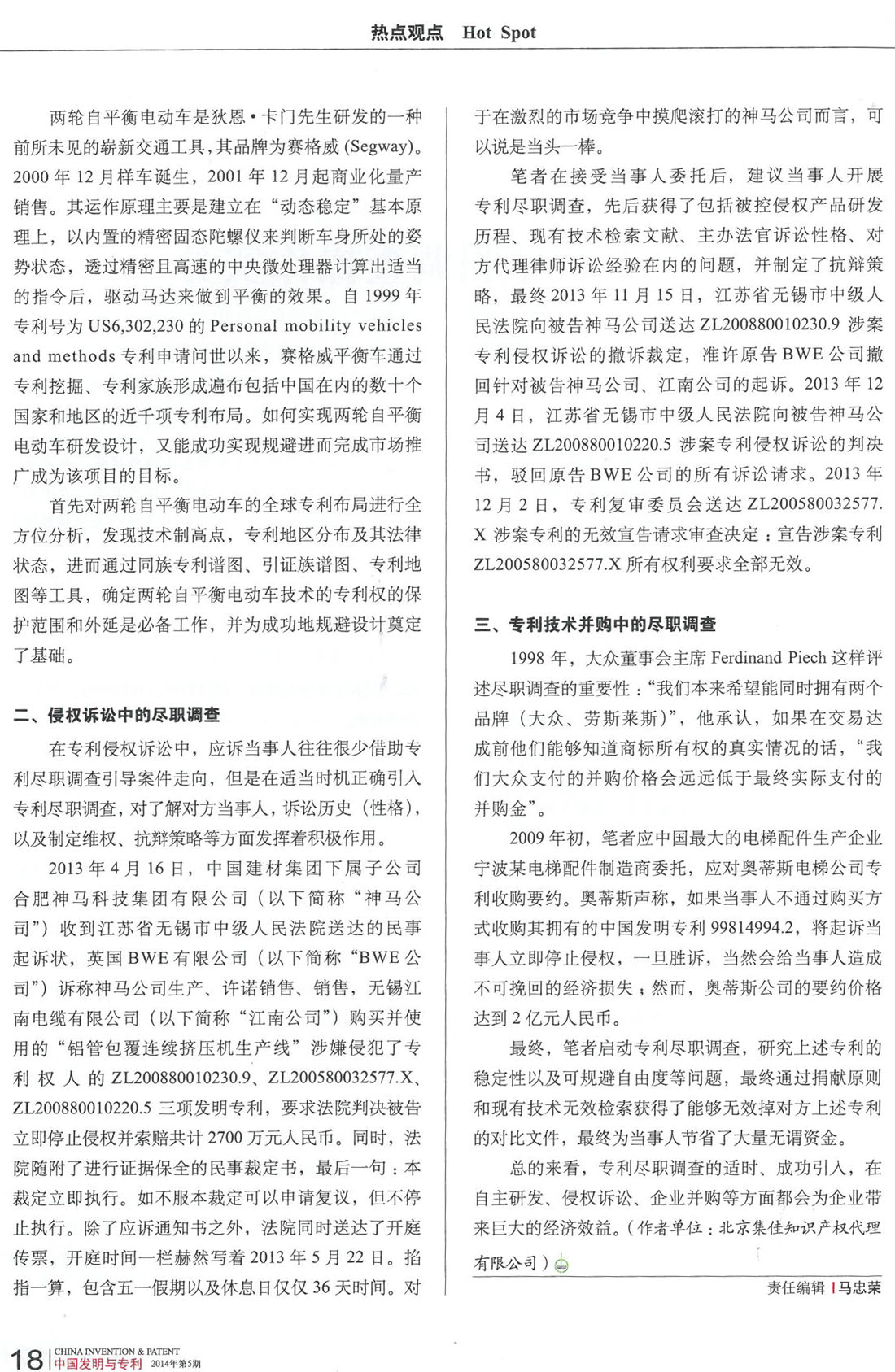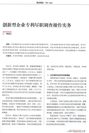 集佳律師撰文《創(chuàng)新性企業(yè)專利盡職調查操作實務》被《中國發(fā)明與專利》發(fā)表