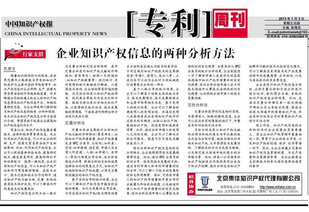 《中國知識產(chǎn)權(quán)報(bào)》:企業(yè)知識產(chǎn)權(quán)信息的兩種分析方法
