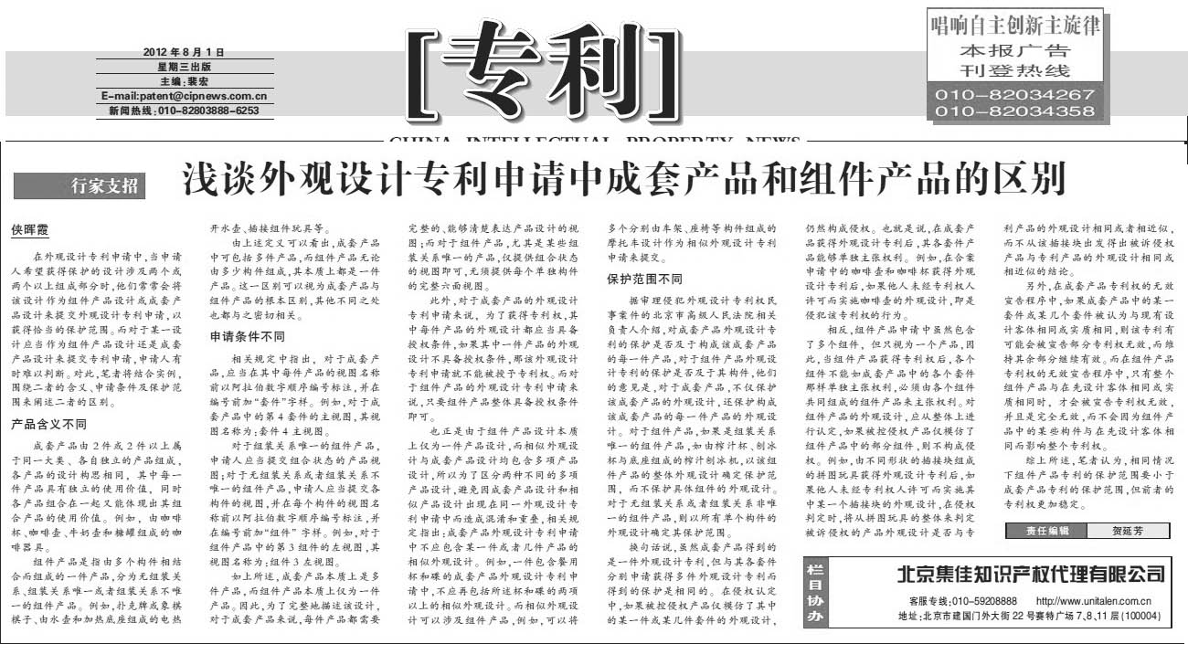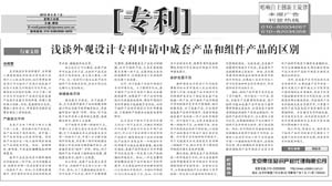 《中國(guó)知識(shí)產(chǎn)權(quán)報(bào)》:淺談外觀設(shè)計(jì)專(zhuān)利申請(qǐng)中成套產(chǎn)品和組件產(chǎn)品的區(qū)別