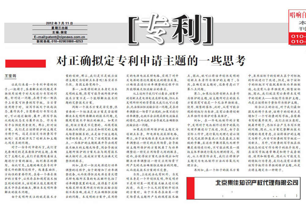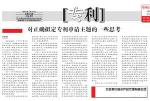 《中國知識產(chǎn)權(quán)報》:對正確擬定專利申請主題的一些思考