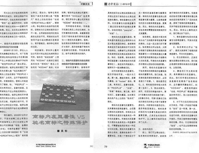 《中華商標(biāo)》:商標(biāo)內(nèi)在顯著性VS馳名商標(biāo)之特殊保護(hù)