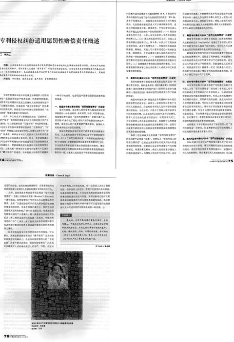 《中國發(fā)明與專利》:專利侵權糾紛適用懲罰性賠償責任概述