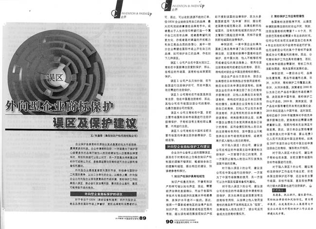 《中國發(fā)明與專利》:外向型企業(yè)商標(biāo)保護誤區(qū)及保護建議