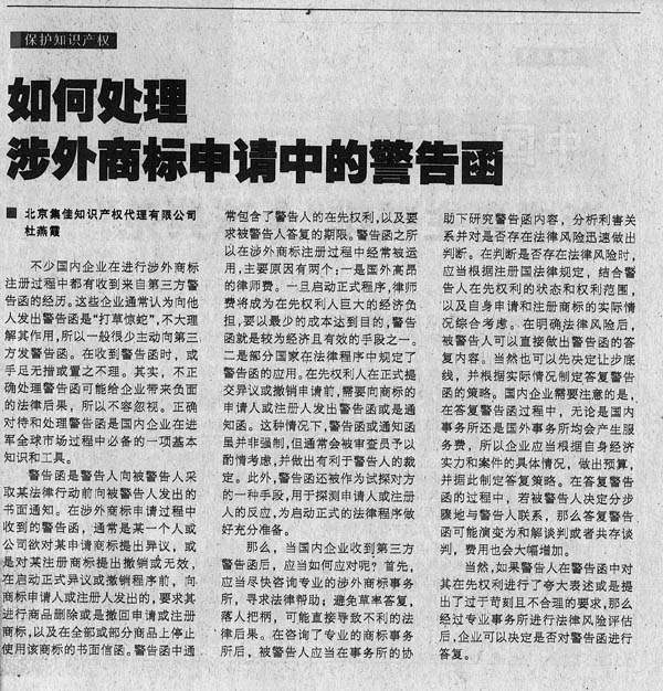 《國際商報(bào)》:如何處理涉外商標(biāo)申請中的警告函