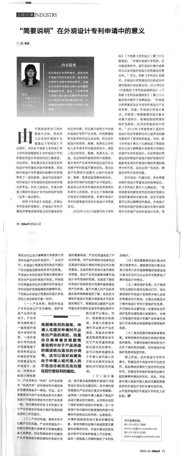 《China IP》:“簡(jiǎn)要說明”在外觀設(shè)計(jì)專利申請(qǐng)中的意義