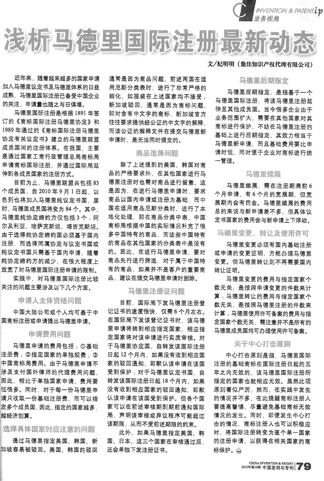 《中國發(fā)明與專利》:淺析馬德里國際注冊最新動態(tài)