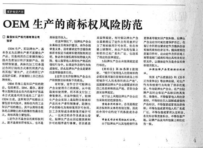 《國際商報》:OEM生產(chǎn)的商標(biāo)權(quán)風(fēng)險防范