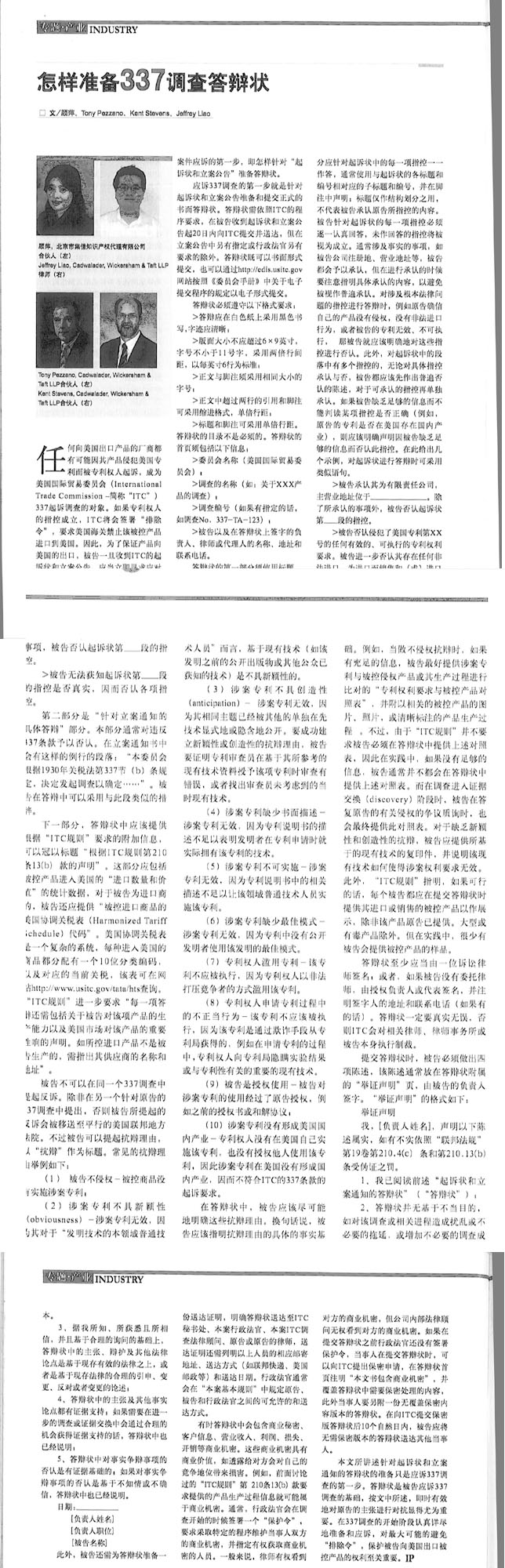 《China IP》:怎樣準備337調(diào)查答辯狀
