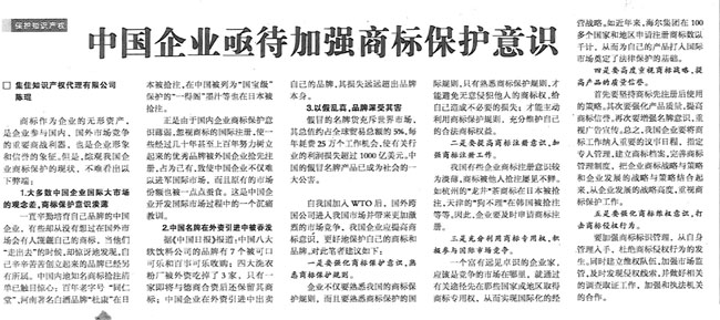 《國際商報》:中國企業(yè)亟待加強商標(biāo)保護(hù)意識