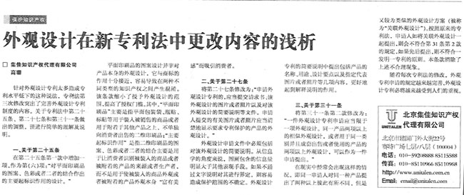 《國(guó)際商報(bào)》:外觀設(shè)計(jì)在新專利法中更改內(nèi)容的淺析