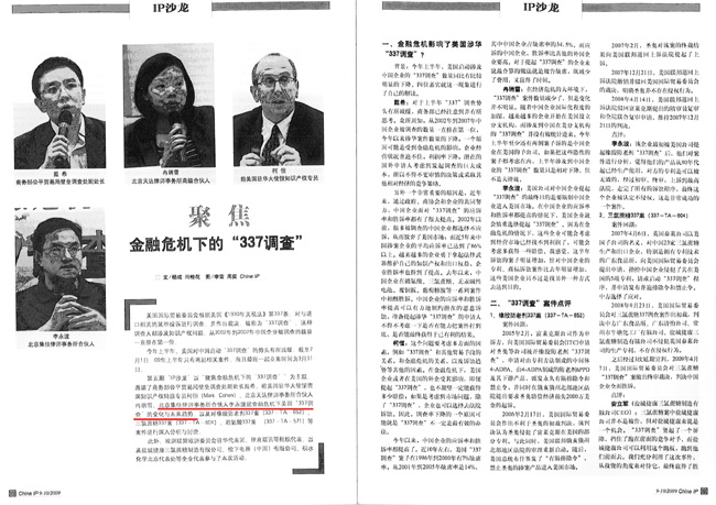 《China IP》:金融危機(jī)下的“337”調(diào)查