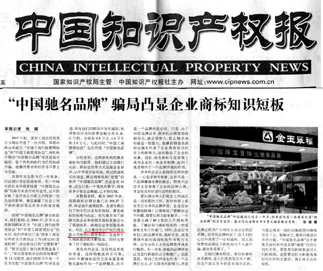 《中國知識產(chǎn)權(quán)報》:"中國馳名品牌"騙局凸顯企業(yè)商標(biāo)知識短板