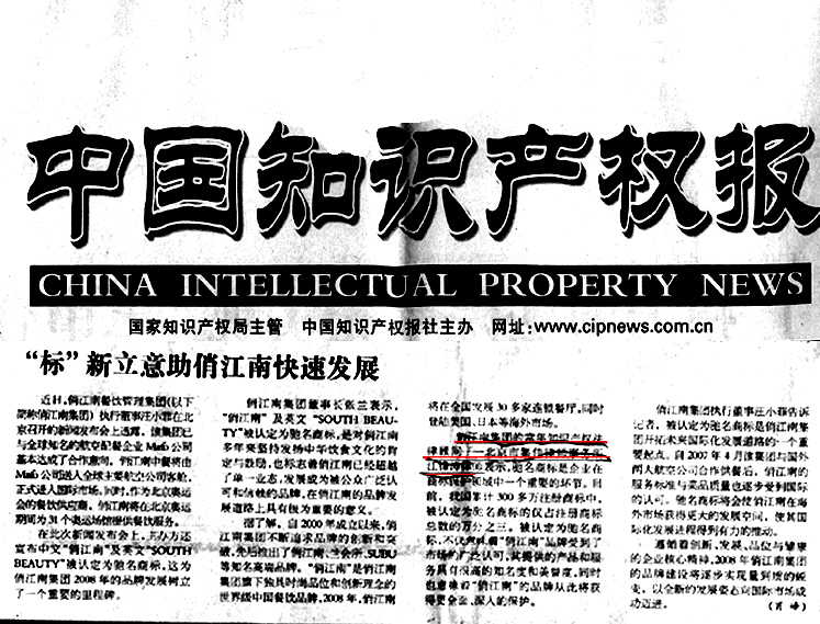 《中國(guó)知識(shí)產(chǎn)權(quán)報(bào)》:"標(biāo)"新立意助俏江南快速發(fā)展