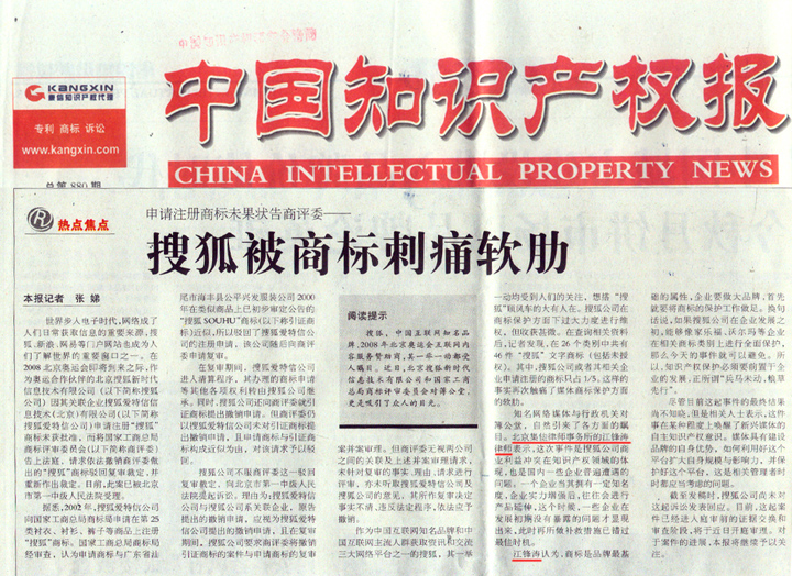 作為中國互聯(lián)網(wǎng)知名品牌和中國互聯(lián)網(wǎng)主流人群獲取資訊和交流三大網(wǎng)絡(luò)平臺之一的搜狐,其一舉一動均受到人們的關(guān)注,想搭“搜狐”順風(fēng)車的大有人在。搜狐公司在商標(biāo)保護(hù)方面下過大力度進(jìn)行維權(quán),但收獲甚微。在查詢相關(guān)資料后,記者發(fā)現(xiàn),在26個類別中共有46件“搜狐”文字商標(biāo)(包括未授權(quán))。其中,搜狐公司或者其相關(guān)企業(yè)申請注冊的商標(biāo)只占1/5。這樣的事實再次觸痛了媒體商標(biāo)保護(hù)方面的軟肋。