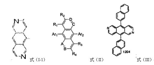 首先,確定審查意見所指出的共同結構是否正確,根據上面所說的第一種觀點,該申請的共同結構即為審查意見中所指出的結構;根據第二種與第三種觀點,將與母核吡啶并[3,4-g]異喹啉直接連接的變量R1、Q1與Q2引入共同結構的確定,但R1可為氫原子、氰基、碳原子數是1~30的烷基、取代或未取代的碳原子數6~50的芳基、取代或未取代的碳原子數5~50的雜環(huán)基、取代或未取代的碳原子數7~30的芳香族胺基、取代或未取代的碳原子數7~30的芳烷氧基或取代或未取代的碳原子數7~30的芳烷巰基;這幾者對母核所產生的電子效應、位阻效應等影響各異,也不是本領域公知的同一化合物類別;L1與L2可以為0或1,Q1和Q2獨立的選自氮、氧、硫、碳原子數6~30的芳基或碳原子數1~30的雜環(huán)基,其中,氮、氧與硫原子,其為化學領域常指的雜原子,三者對母核的影響類似,可視為本領域中公認的同一化合物類別,但其與芳基、雜環(huán)基差異較大,相互取代后,本領域技術人員并不能確定其能產生同樣的效果,因此不能視為同一化合物類別。由此可見,三種變量中各自所定義的可選擇的元素均不是本領域中公認的同一化合物類別,將變量引入后的結構也不是清楚和明確的,該申請的共同結構只能是審查員所指出的吡啶并[3,4-g]異喹啉(式(I-1))。