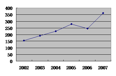 我國(guó)于2001年3月28日,國(guó)務(wù)院第36次常務(wù)會(huì)議通過《集成電路布圖設(shè)計(jì)保護(hù)條例》,該條例從2001年10月1日起實(shí)施,至今,施行《集成電路布圖設(shè)計(jì)保護(hù)條例》已有六年多時(shí)間了。集成電路布圖設(shè)計(jì)的申請(qǐng)量逐年上升,圖1給出集成電路布圖設(shè)計(jì)從2001年以來的登記量的變化。截至到2008年1月16日,國(guó)家知識(shí)產(chǎn)權(quán)局已公告集成電路布圖設(shè)計(jì)專有權(quán)1505項(xiàng),在上述登記中,國(guó)內(nèi)企業(yè)(忽略個(gè)人登記)的登記占80%左右,國(guó)外企業(yè)(忽略個(gè)人登記)占20%左右,這說明,集成電路布圖設(shè)計(jì)以國(guó)內(nèi)企業(yè)登記為主,國(guó)外企業(yè)登記較少。