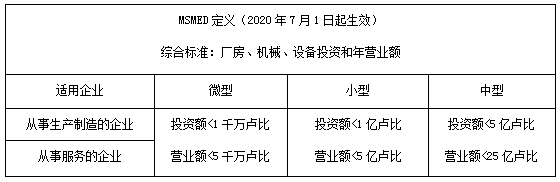 B.小實(shí)體——指(a)從事生產(chǎn)制造的企業(yè),其廠房和機(jī)械投資不超過印度《微型,小型和中型企業(yè)發(fā)展法》(MSMED)(2006年)第7(1)(a)款中規(guī)定的中型企業(yè)限額;(b)從事提供服務(wù)的企業(yè),其設(shè)備投資不超過印度《微型,小型和中型企業(yè)發(fā)展法》(MSMED)(2006年)第7(1)(b)款中規(guī)定的中型企業(yè)限額。申請(qǐng)人需要在提交申請(qǐng)的同時(shí),提交相關(guān)證明文件。