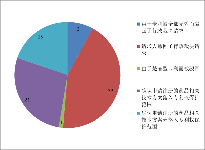 這里統(tǒng)計的僅是做出了確認申請注冊的藥品相關技術方案是否落入專利權保護范圍結論的裁決,其他案件無法統(tǒng)計。