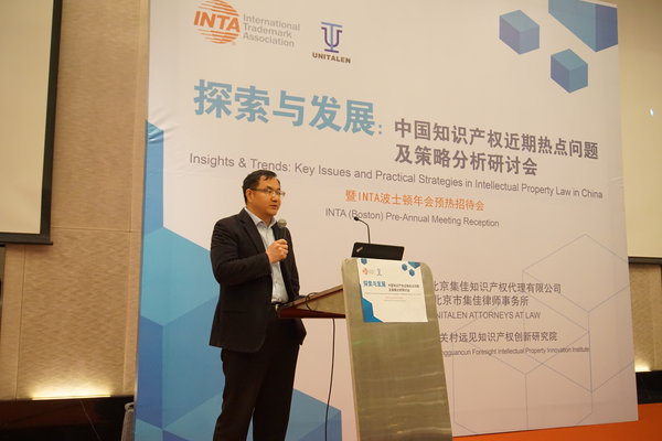 3月22日下午,由國際商標(biāo)協(xié)會(INTA)、北京集佳知識產(chǎn)權(quán)代理有限公司、北京市集佳律師事務(wù)所、中關(guān)村遠(yuǎn)見知識產(chǎn)權(quán)創(chuàng)新研究院共同舉辦的2019 INTA 年會預(yù)熱酒會在北京成功舉行。INTA中國全球咨詢理事會聯(lián)合主席、不正當(dāng)競爭委員會副主席李永波先生出席,北京高院法官、北京知識產(chǎn)權(quán)法院法官、知名高校法學(xué)院教授、企業(yè)界代表、業(yè)內(nèi)同仁共100余位嘉賓參加了會議。