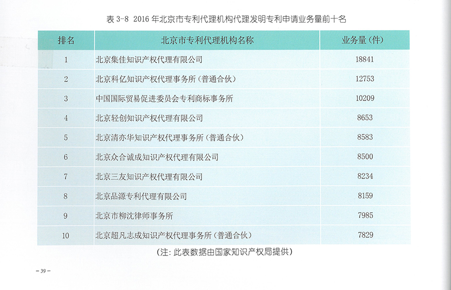 《2016年度北京市專利代理年報》數(shù)據(jù)來源于國家知識產(chǎn)權(quán)局公開的機(jī)構(gòu)情況、國家知識產(chǎn)權(quán)局條約法規(guī)司編制的《專利代理簡訊》、專利代理機(jī)構(gòu)報送的年檢數(shù)據(jù)以及北京市專利申請及授權(quán)數(shù)據(jù)。年報從北京市專利代理機(jī)構(gòu)整體情況、業(yè)務(wù)經(jīng)營情況、專利代理人培訓(xùn)、資格考試情況等方面展示了北京專利代理行業(yè)的整體面貌和發(fā)展動態(tài)。