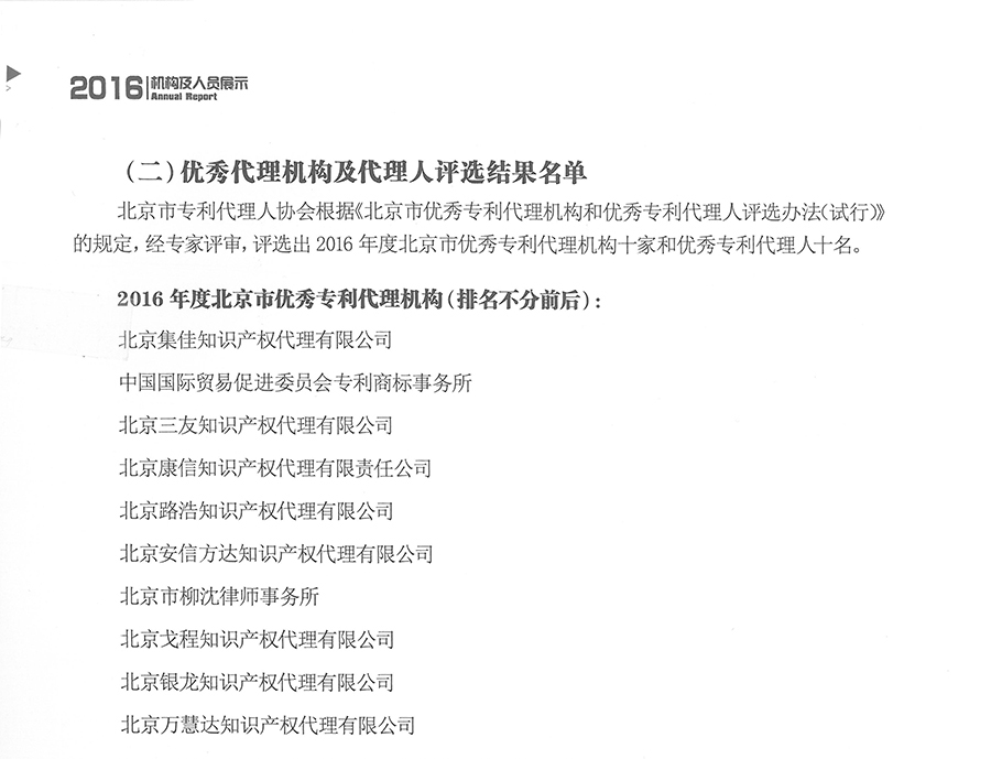 日前,北京市知識產(chǎn)權(quán)局發(fā)布《2016年度北京市專利代理年報》,在北京專利代理機(jī)構(gòu)業(yè)務(wù)排名中,集佳以代理量18841件的成績在發(fā)明專利申請量中再次蟬聯(lián)第一,并在多領(lǐng)域有效發(fā)明專利量排名中成績矚目。此外,經(jīng)過專家評審,集佳憑借綜合的業(yè)務(wù)能力和優(yōu)質(zhì)的專業(yè)服務(wù),連續(xù)四年入選“北京市優(yōu)秀專利代理機(jī)構(gòu)”,并在北京市專利代理人協(xié)會于2016年首次啟動的專利代理機(jī)構(gòu)等級評定工作中榮獲最高星級(AAAA)代理機(jī)構(gòu)。