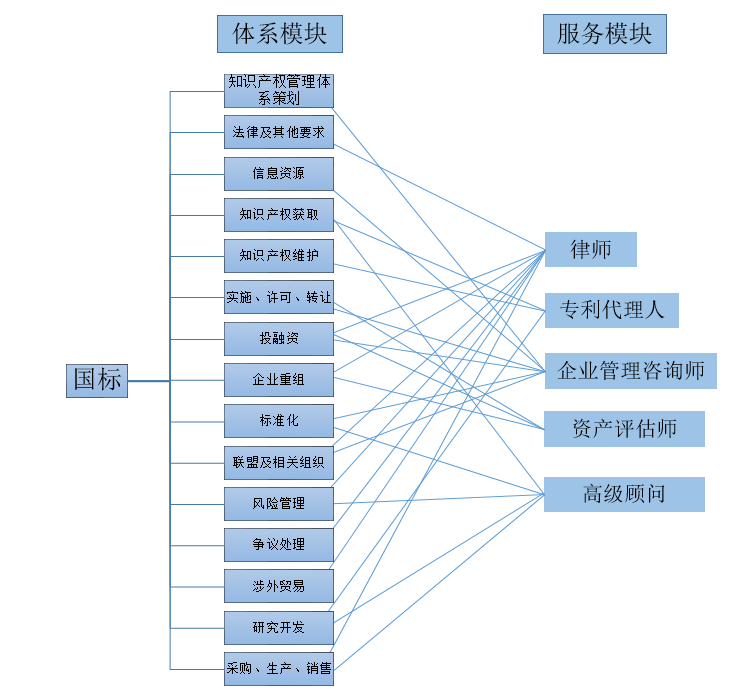 第一種鑒于其特殊情況,雖然市場占比較高,本文不做討論,而第二種情況,企業(yè)和咨詢機(jī)構(gòu)在構(gòu)建體系過程中,人力和物力量投入最大的三個(gè)模塊分別是管理現(xiàn)狀診斷、構(gòu)建知識(shí)產(chǎn)權(quán)管理體系、培訓(xùn)和運(yùn)行,涉及到的服務(wù)人員有咨詢師、律師、專利代理人、資產(chǎn)評(píng)估師。而培訓(xùn)和運(yùn)行模塊中的培訓(xùn)模塊,包括管理培訓(xùn)子模塊9個(gè)課時(shí),知識(shí)產(chǎn)權(quán)基礎(chǔ)子模塊3個(gè)課時(shí),專利維護(hù)子模塊1個(gè)課時(shí)、專利撰寫子模塊2個(gè)課時(shí),專利保護(hù)和信息利用子模塊3個(gè)課時(shí),知識(shí)產(chǎn)權(quán)運(yùn)營子模塊1個(gè)課時(shí),知識(shí)產(chǎn)權(quán)保密管理子模塊1個(gè)課時(shí),知識(shí)產(chǎn)權(quán)風(fēng)險(xiǎn)規(guī)避子模塊1個(gè)課時(shí)。