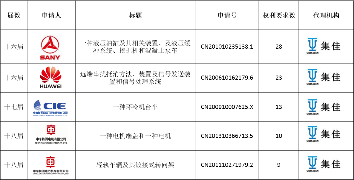 八、集佳代理22件獲獎(jiǎng)專利領(lǐng)跑